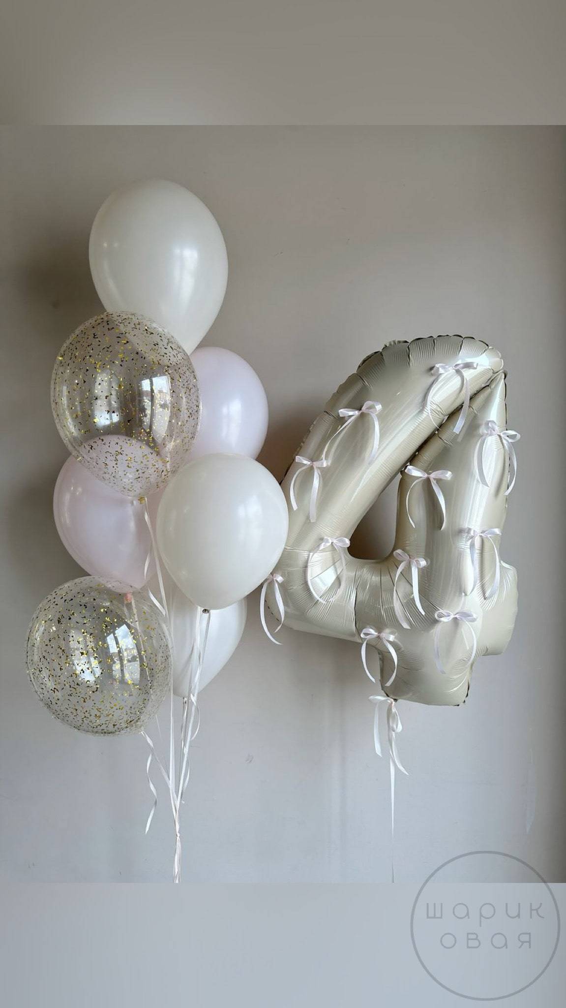Фольгированная цифра с бантиками - 1300 руб.