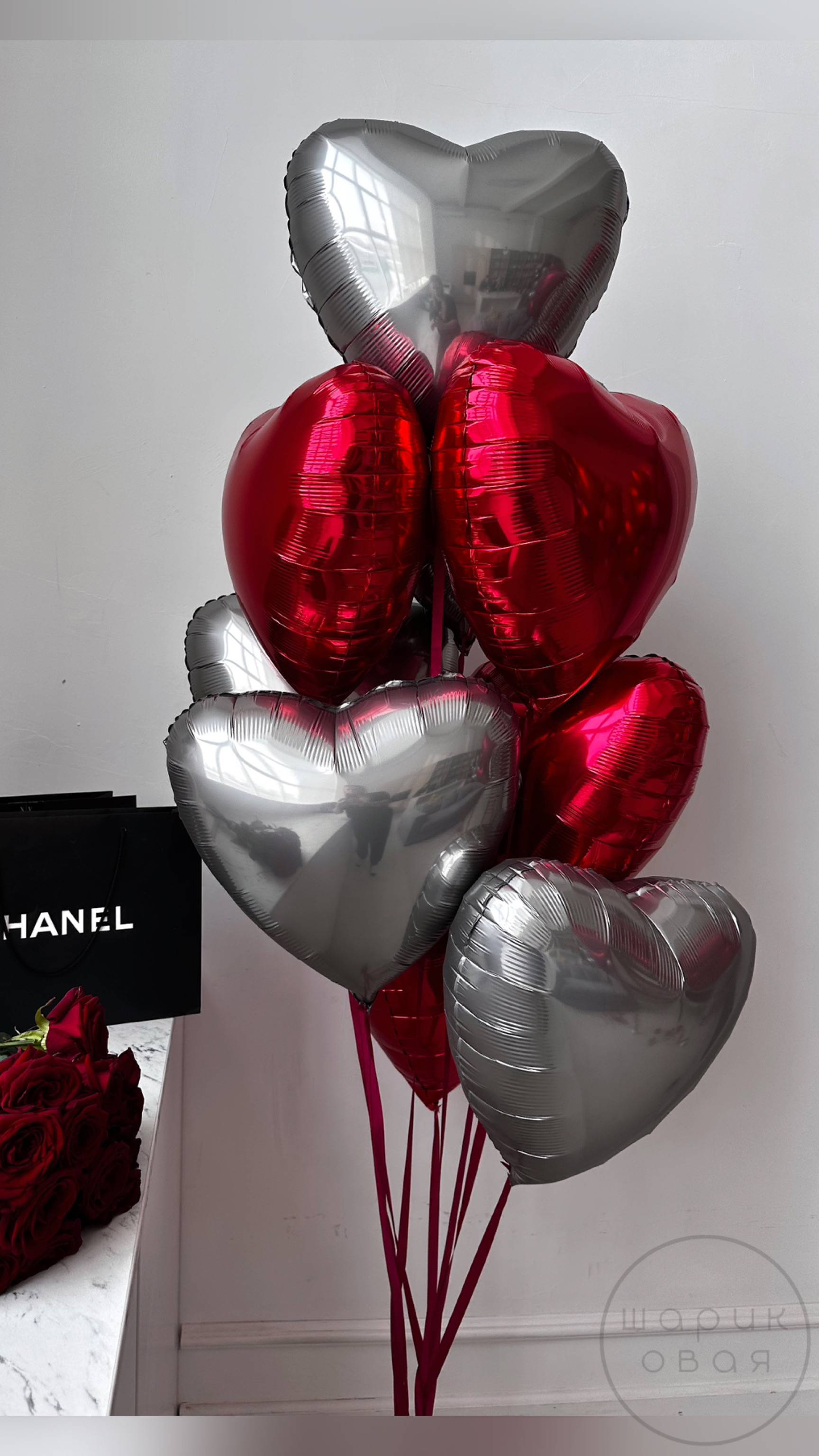 Фонтан из 9 фольгированных сердец - 3425 руб.